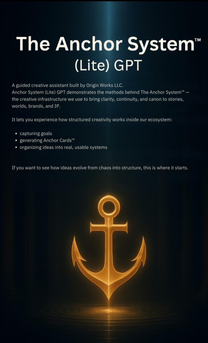 • Canon — maintain one living truth across projectsWant to explore The Anchor System for your world, IP, or studio?